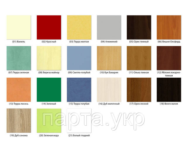 Крайка стільниці — ПВХ 2 мм, інші елементи ПВХ 0,5 мм.